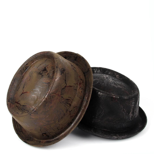 100% Leather Fedora Hat for Men Flat Pork Pie Hat Gentleman Bowler Church Jazz Sun Hat Big 4Size S M L XL