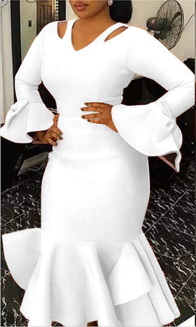 2022 New Arrivals Women African Church Party Dresses Elegant Fashion Long Sleeve Ruffles Knee Length Midi Bodycon Pencil Dress