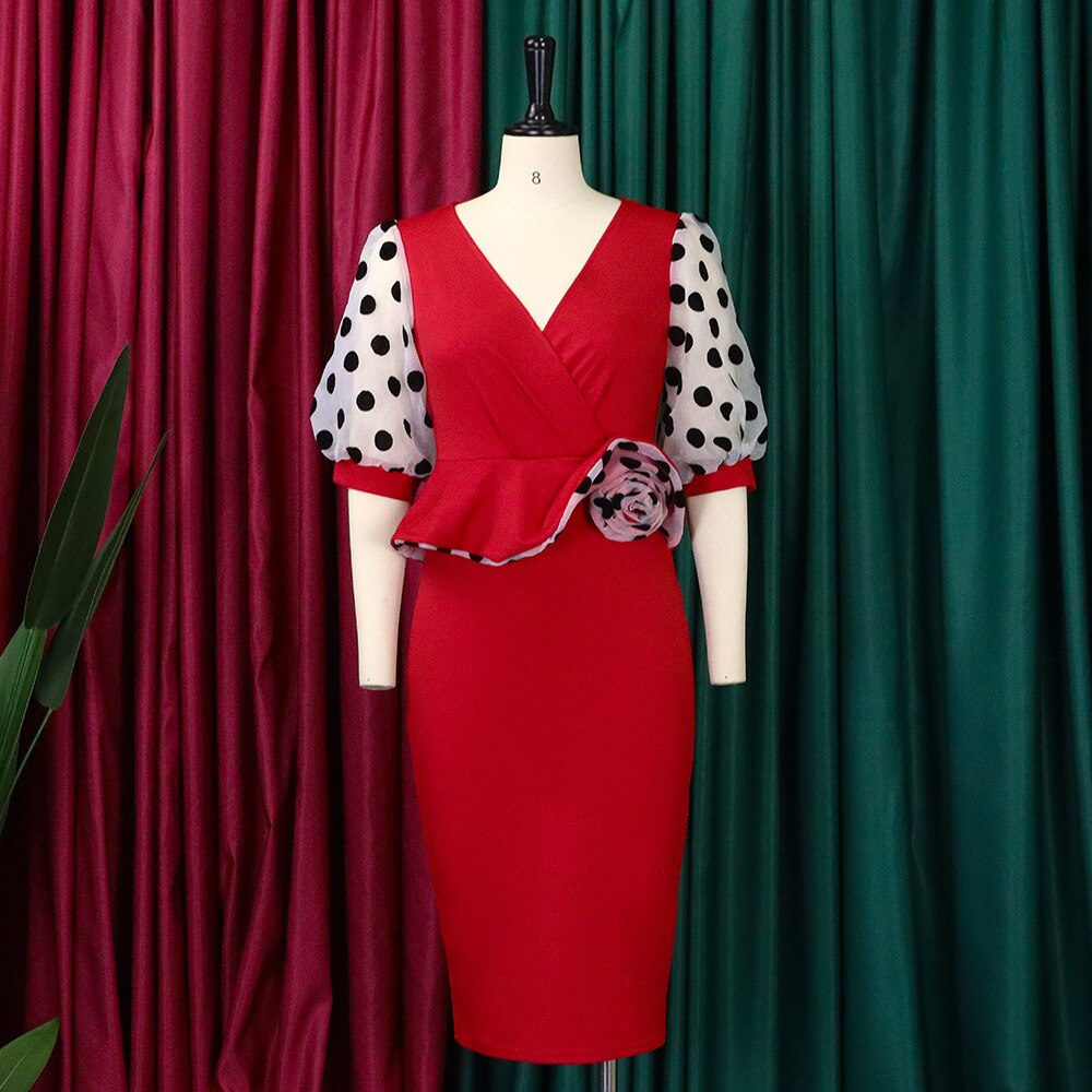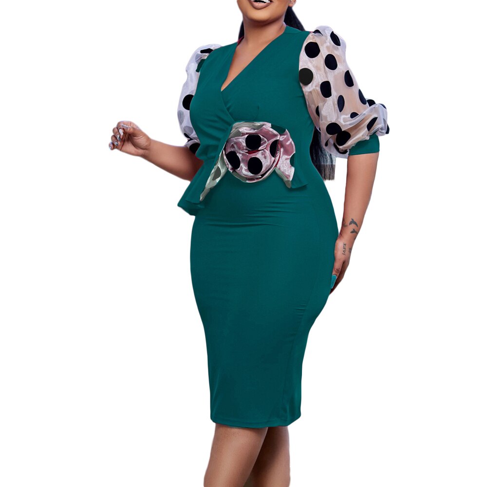 2022 New Arrivals Women Elegant Bow Waist Mesh Short Sleeve Patchwork Casual Party Knee Length Formal Wear Church Dinner Dress