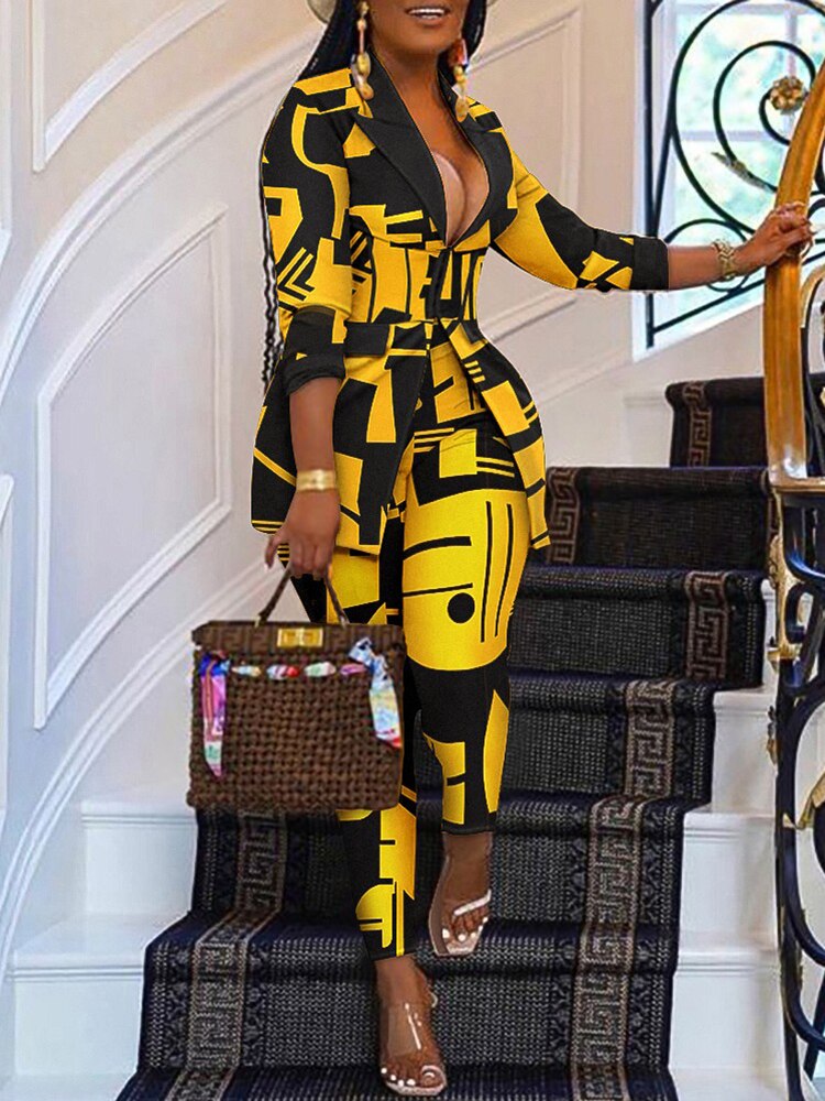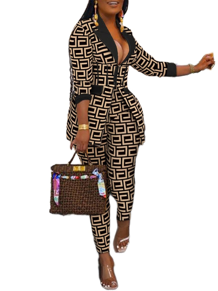 2022 New Women's Suit Notched Collar Geo Print Corset Blazer Coat & Pants Set Office Lady Daily Elegant Set 2 Pieces