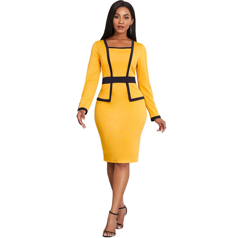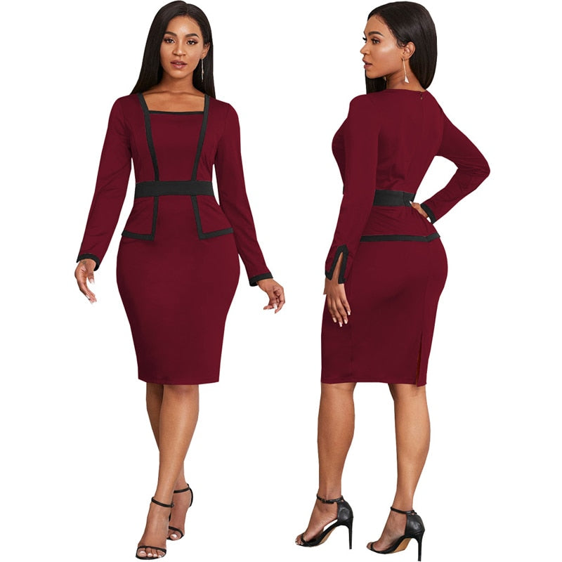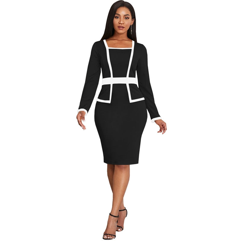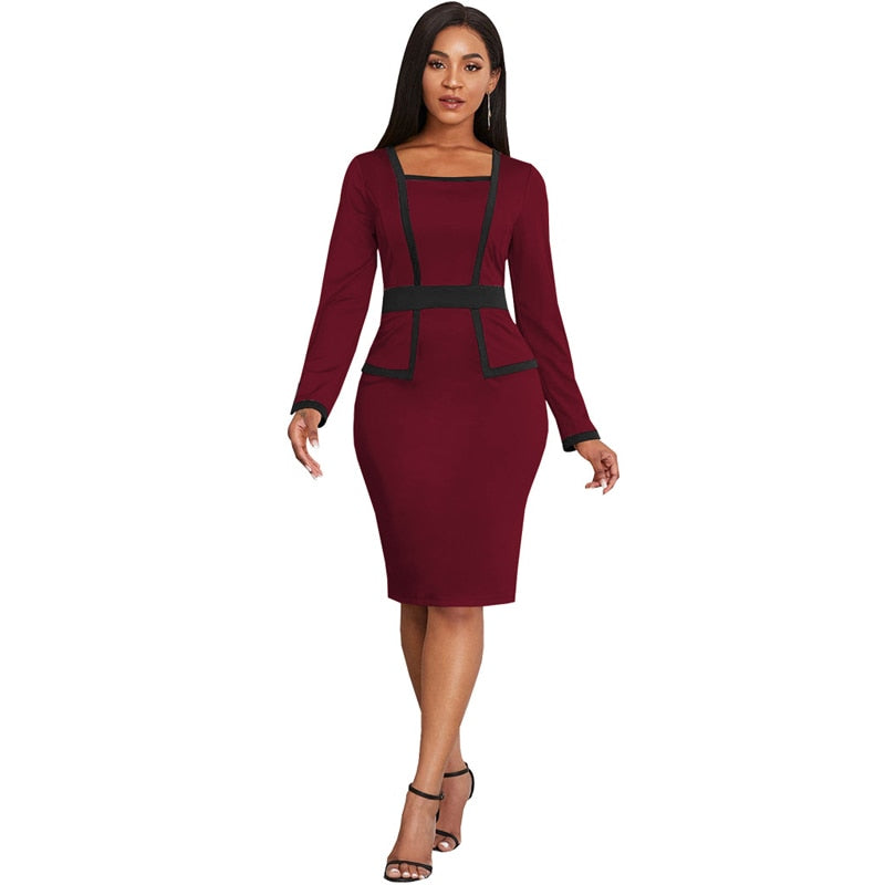 2022 Popular Women Elegant Office Work Church Dresses Fashion Long Sleeve Knee Length Formal Leisure Pencil Midi Dress