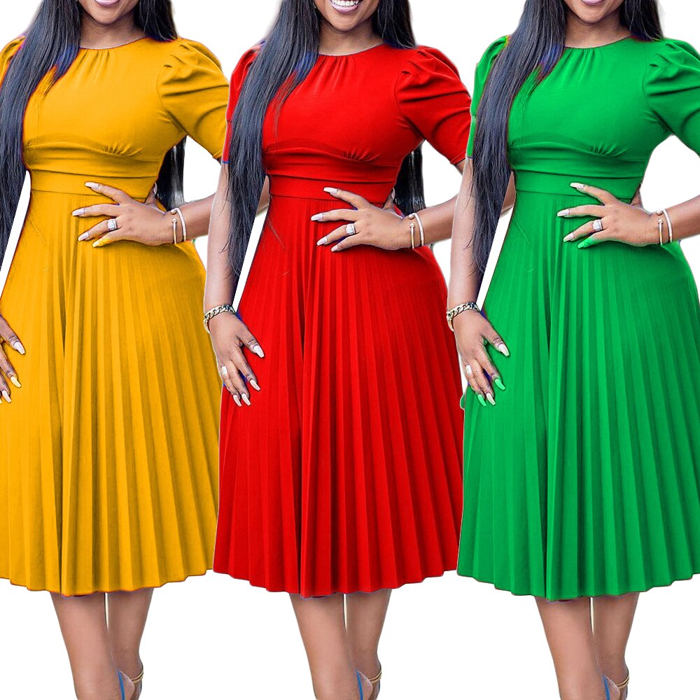 2023 New Arrivals Summer Women Casual Dress Solid Color Elegant Fashion Ladies Short Sleeve Bridesmaid African Dinner Dresses
