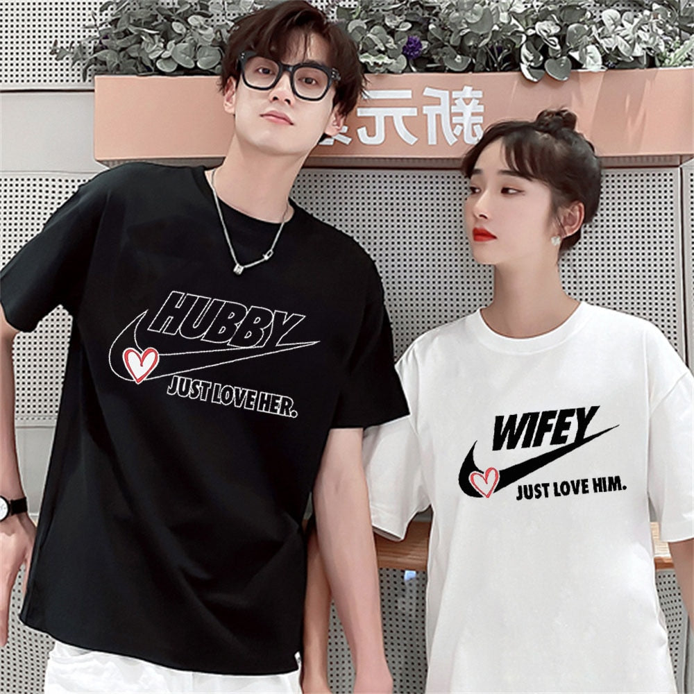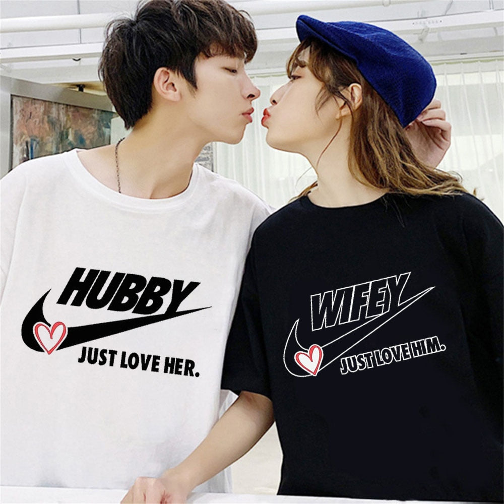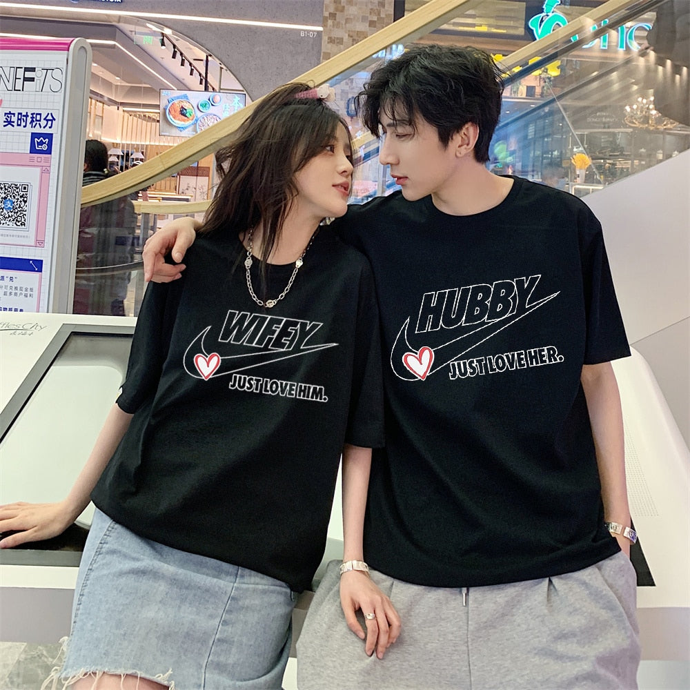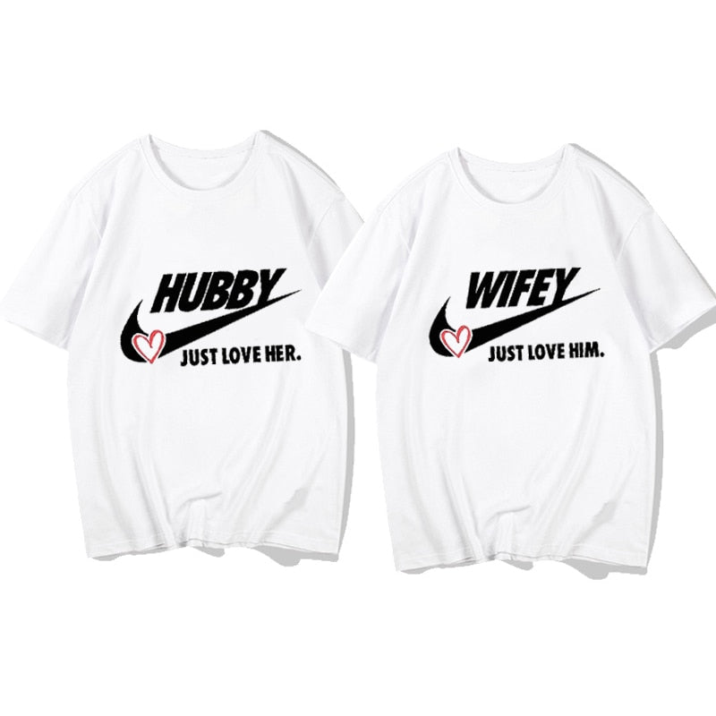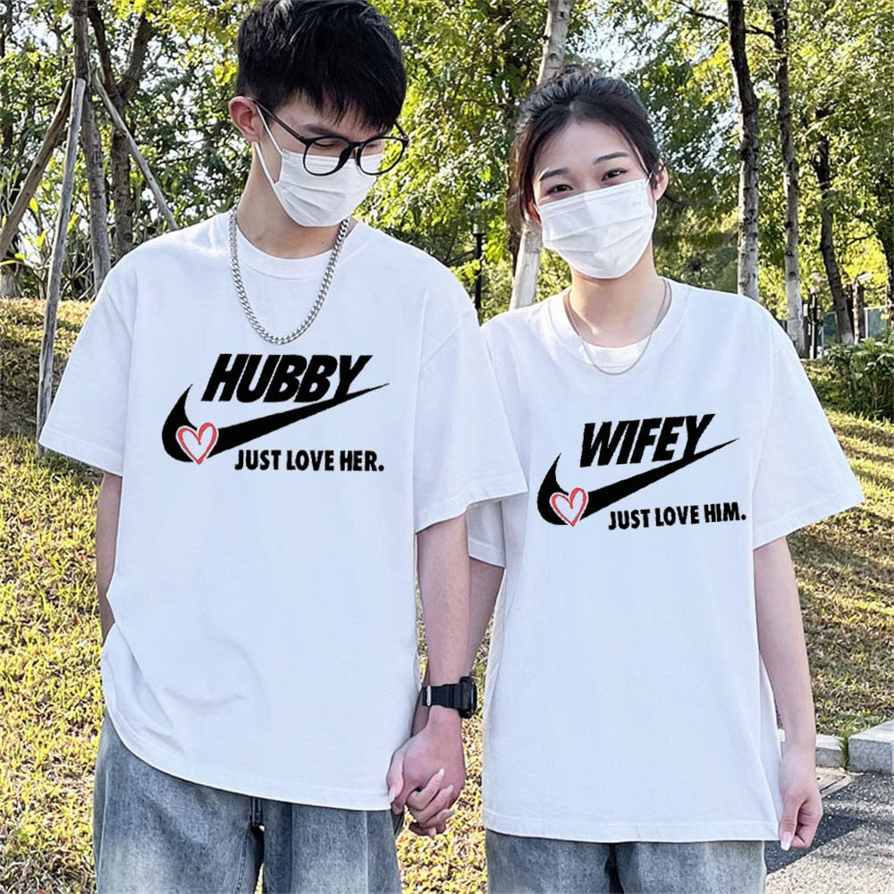 240g High Quality Cotton Hubby Wifey Love Couples Matching Valentine's Lover Gift Vacation Summer Short Sleeve TShirt Tee