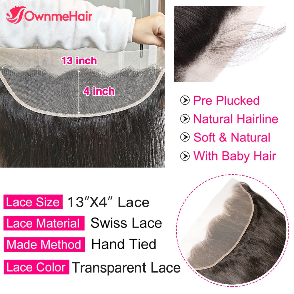 4x4 5x5 13x4 Transparent Lace Frontal Closure Brazilian Human Hair Frontal Remy Hair Pre Plucked with Baby Hair Bleached Knots